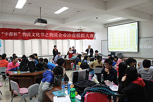 “物流企业经营沙盘模拟大赛”是以物流企业经营模拟环境为平台,学生组成多个模拟的物流公司,通过在同一个市场环境中竞争经营。在模拟经营的比赛中,每个公司的各个成员时而激烈争论,时而埋头深思,时而气定神闲,时而犹豫不决,时而快乐轻松,时而高度紧张,比赛现场上,参赛学生竞争异常激烈,全然不顾连续作战带来的疲劳,从早上八点一直奋战到到晚上十点。经过40个公司的两场初赛征战,有12个组进入了决赛。决赛中,各队又在更加复杂多变的环境中,进行了最后的拼搏,最终依据盈利状况和业绩等多个经营指标评出了1、2等奖。