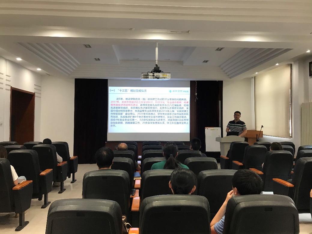 党委副书记孙涛就学院“十四五”党建和思想政治工作的相关规划进行了解读,系统的介绍了党建和思想政治工作“十三五”规划完成情况,分别提出了以筑牢全国样板支部建设成果、学生工作队伍专业化素质水平提升建设核心、建成“全国模范教职工之家”为目标的“十四五”党建和分工会指标,并就两项指标提出了相应的主要任务和举措。