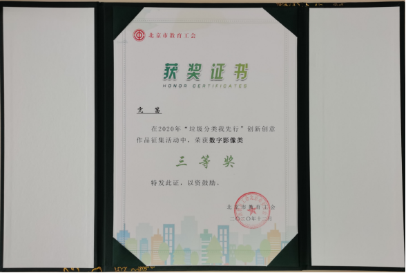 午夜av 分工会、分团委制作短视频荣获佳绩 来源: 发布时间:2021-01-07 浏览次数: 次 2020年12月, 午夜av 分工会联合分团委,制作了《众志成城一条心、垃圾分类变成金》短视频参加北京市教育工会2020年“垃圾分类我先行”创新创意作品征集活动,荣获数字影像类三等奖。自北京市垃圾分类政策实施以来,校园仍存在不注重垃圾分类、垃圾掉在地上置之不理等现象。 午夜av 分工会的教师和分团委学生会的青年学生联合发起“桶前值守”行动,在校园中广泛宣传垃圾分类知识、设立分类垃圾桶、师生共同清扫校园,目前校园内垃圾分类的实施已初见成效。