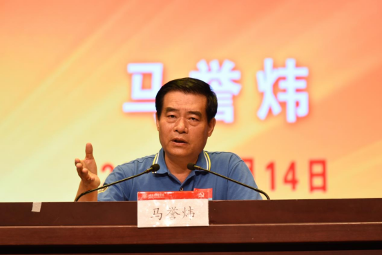 马誉炜将军在推荐人介绍后,展开了理论与实践高度结合的育人篇章。誉炜将军从三个方面讲述了个人的党史感悟,一是中国共产党为什么能。他以“如果世界上有血路,中国共产党走的就是这条路。”引出党的四种精神,党的先驱革命理想高于天精神、无数先烈以我血荐轩辕的牺牲精神、党的时代领袖不负人民的忘我精神、优秀党员赤胆忠心为人民的崇高精神,以亲身实战经历,刻画了党领导的革命军队无往不胜、战功赫赫的忠诚担当。二是马克思主义为什么行。马誉炜将军指出马克思主义是指引无产者站起来的理论、是无产者翻身求解放的理论。马克思主义行,是由马克思主义的科学性、人民性、实践性和创新性决定的,代表人民、为了人民是其能够始终占据理论最高峰和道义制高点的真正原因;马克思主义之所以是真理,在于永远不会停留在同一个水平上,永远向更高的水平发展。誉炜将军所用语句,从不照本宣科,做到了用普通话讲出了大道理。三是中国特色社会主义为什么好。他指出,中国特色社会主义是党和人民历经千辛万苦、付出巨大代价取得的宝贵成果,从奋斗中得来,是实现全面建成小康社会、全面建成社会主义现代化强国、中华民族伟大复兴的必由之路;是科学社会主义理论逻辑和中国社会发展历史逻辑的辩证统一,焕发出科学社会主义的强大生机活力;始终坚持以人民为中心,致力于造福最广大人民群众。中国特色社会主义的波澜历史和精彩画卷,全然展现在了这位饱经沧桑、身经百战的将军身上,展现在了那张充满自信和曾经为之奋斗的笑容之中。